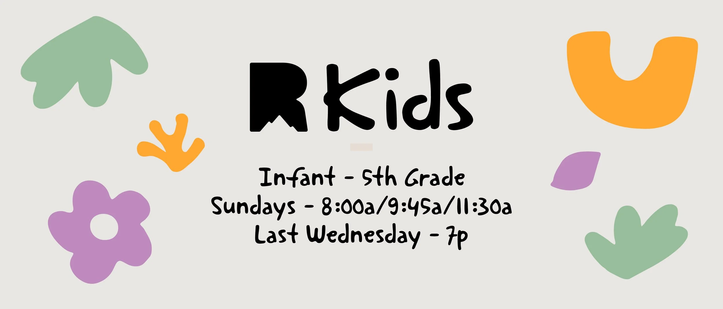 When you arrive on campus, you will see a sign that says "The Rock Kids" to the left of the sanctuary doors.